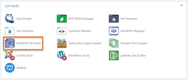 - In the Software section, click on the MultiPHP INI Editor icon.