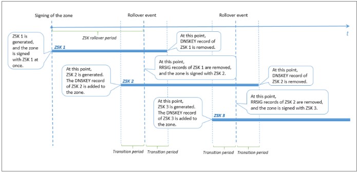 No actions are required of the domain’s DNS zone owner when Zone Signing Keys are rolled over.