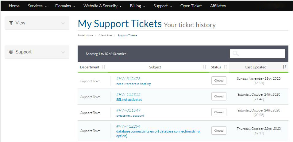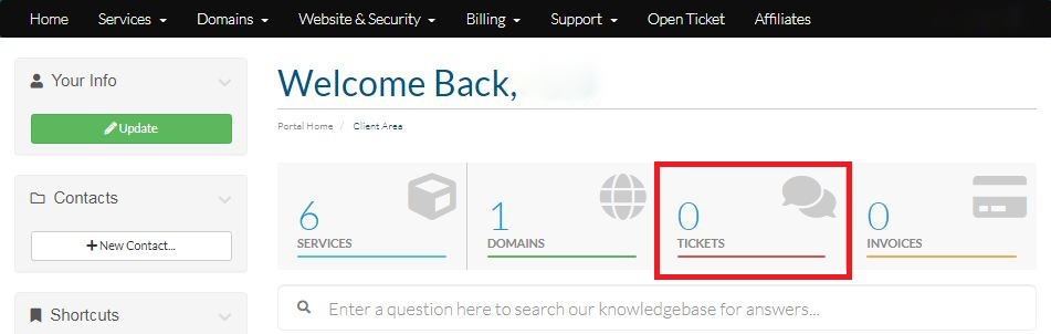 Login to your Hosting Walay client portal and click on the Tickets option as displayed by the Red Box below.
