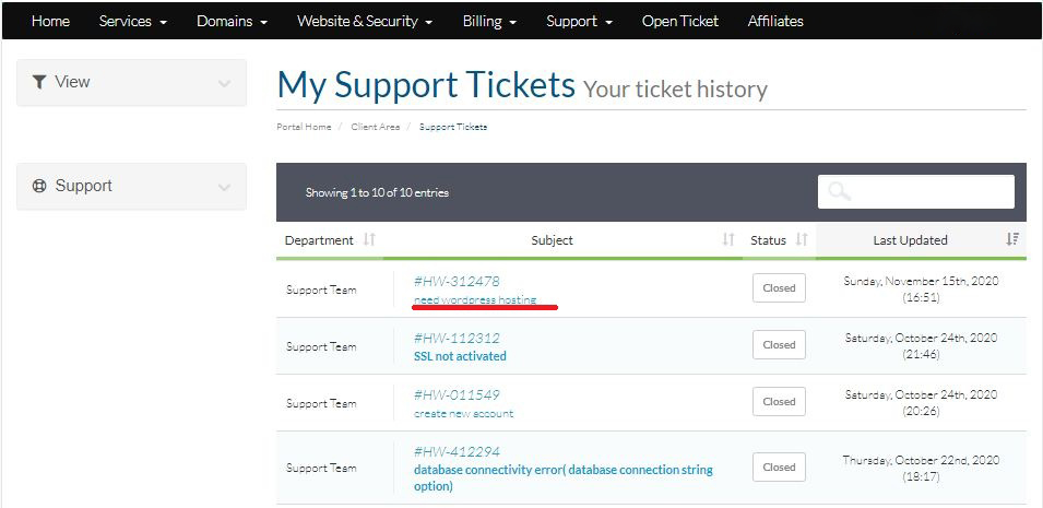 After that you will observe your ticket history along with their status.