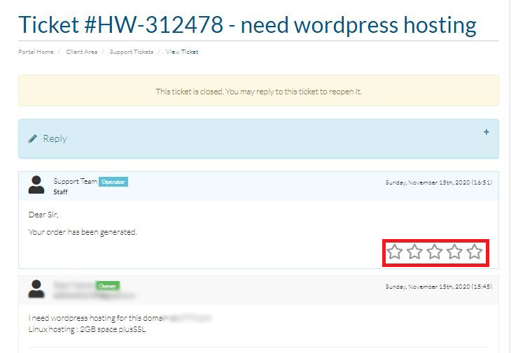 Rate our support reply by clicking on the stars as denoted by the Red Box in the image below.